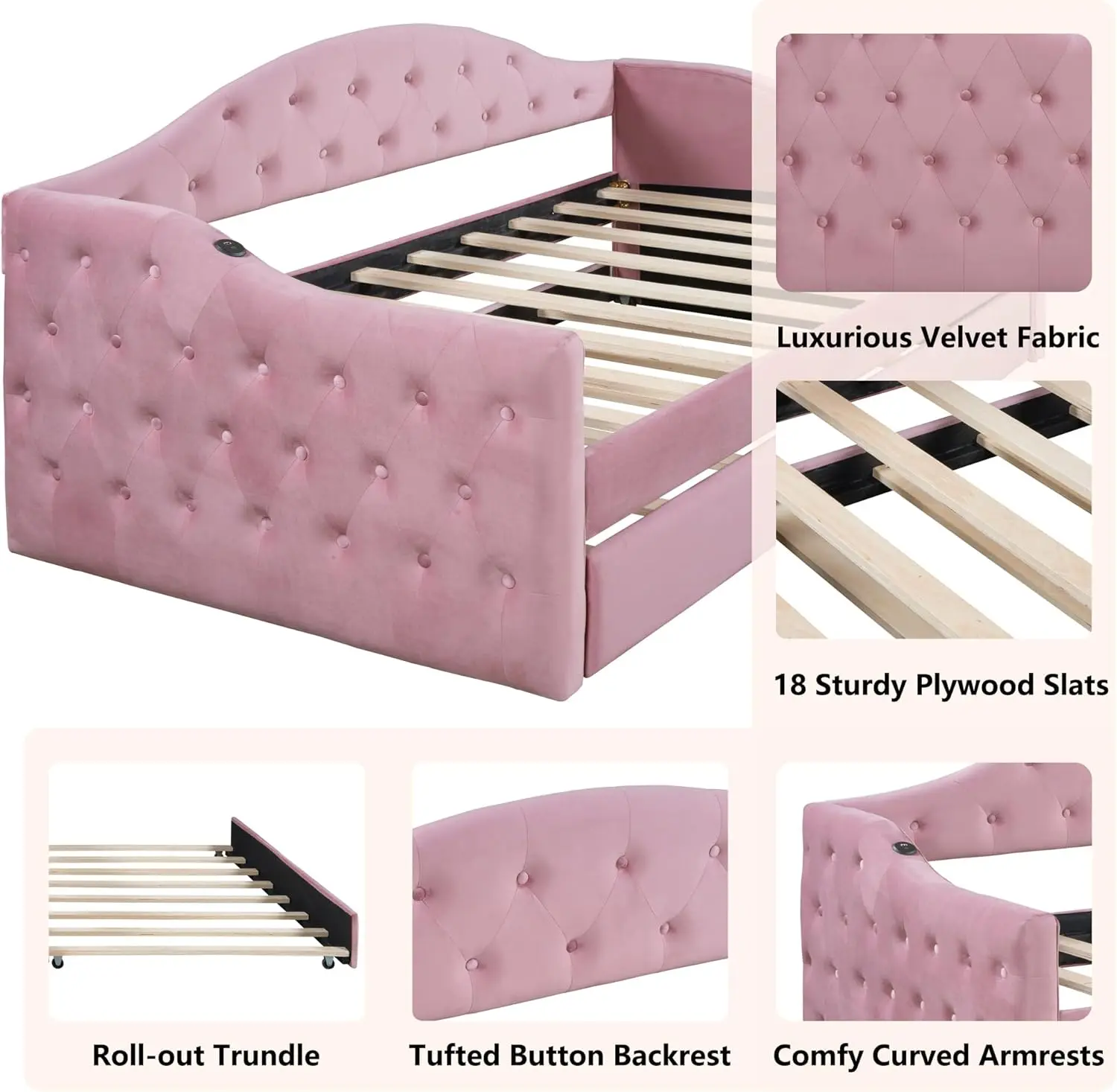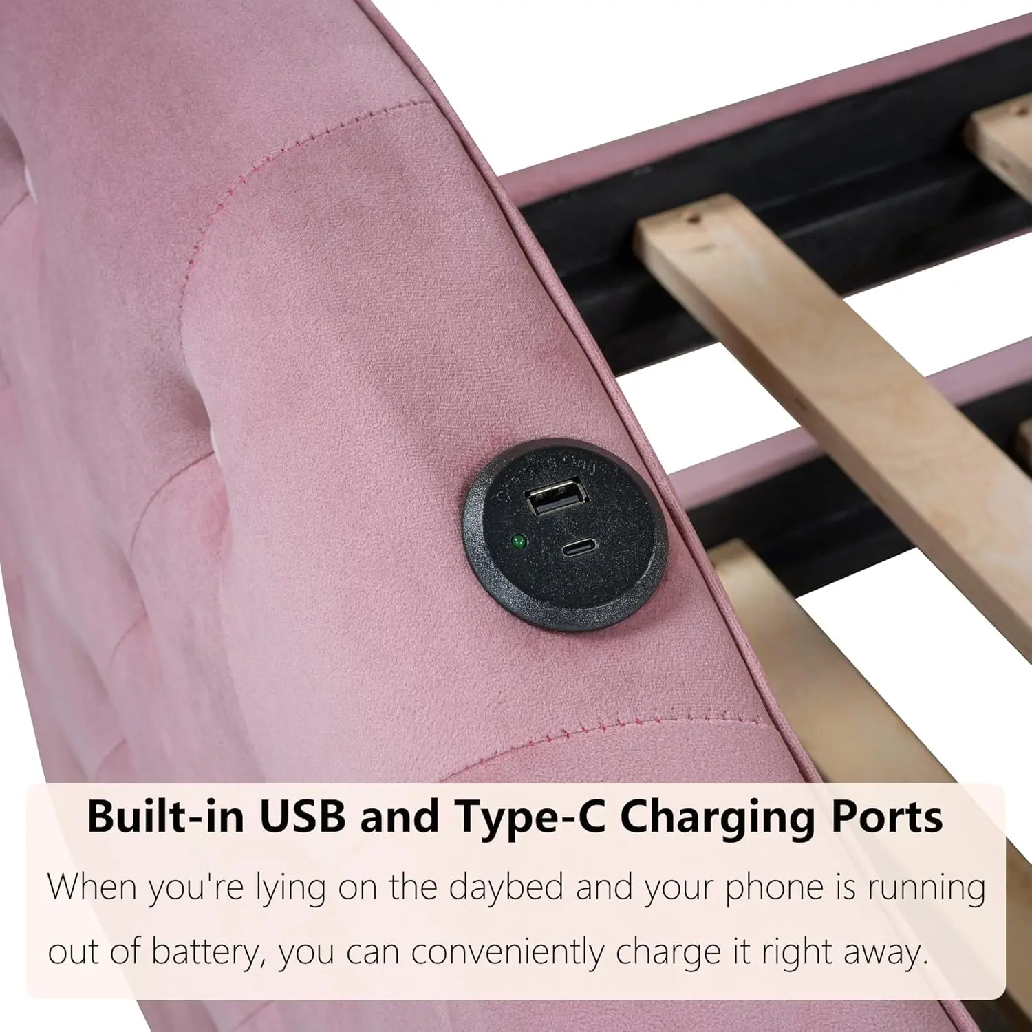 ·[Convenient Charging Station] Stay connected and comfortable with our innovative daybed frame, equipped with a built-in charging station. Charge your devices conveniently with USB and Type-C ports, ensuring you're always powered up while relaxing or sleeping.
