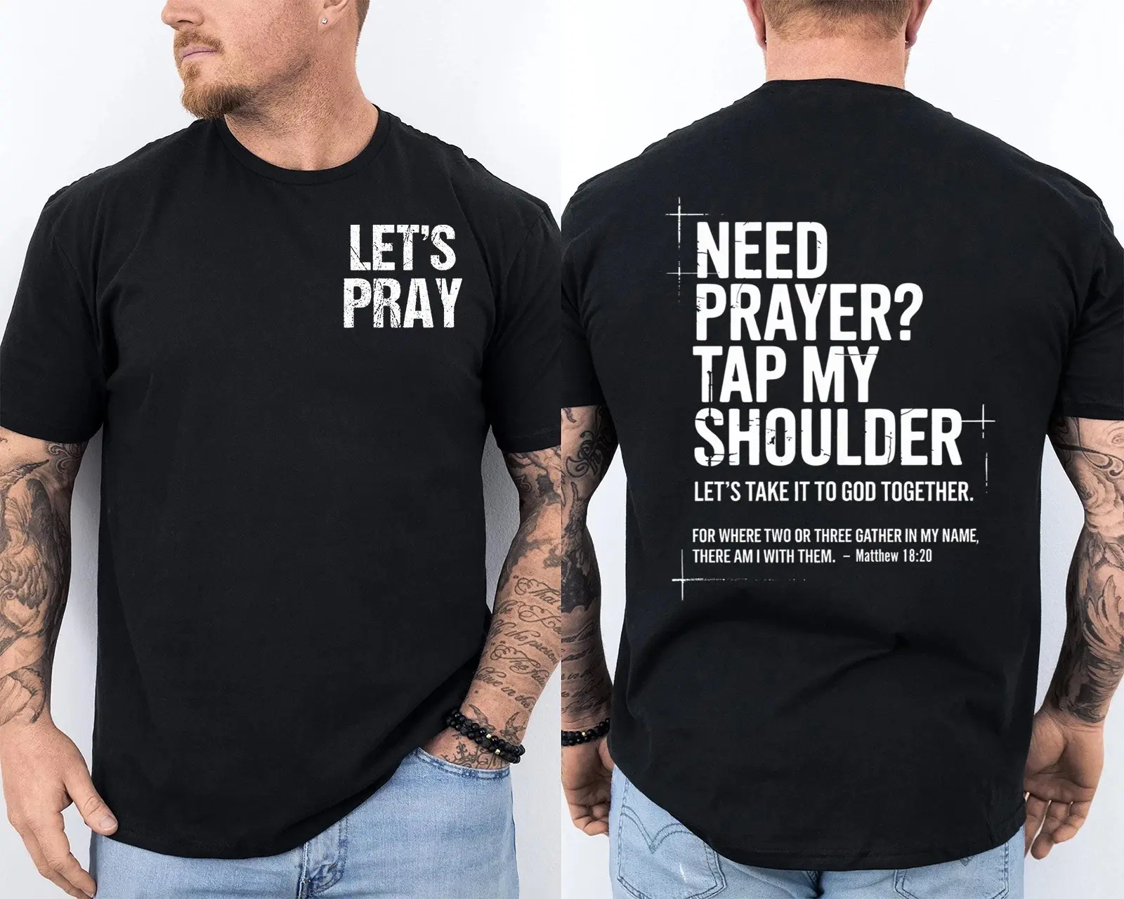 Need Prayer Tap My Shoulder Bible Verse Let's Pray Religious Christian 2 Sided T-Shirt, Christian Receipt Crewneck Short Sleeve, Jesus Merch Faith Based Shirt, Religious Shirt Gift, Gifts For Men Women