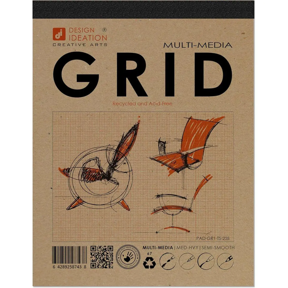 GRID PAD : Removable sheet, pad style sketch book for pencil, ink, charcoal, marker and watercolor painting. Great for art, design and education.