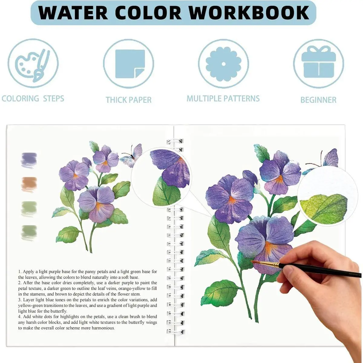 Beginner-Friendly Design: Our watercolor workbook is specifically crafted for beginners, the watercolor coloring book also offers helpful color-mixing tips to help you master gradients and textures.Water color book with step-by-step instructions, you'll quickly to create stunning artwork featuring flower.