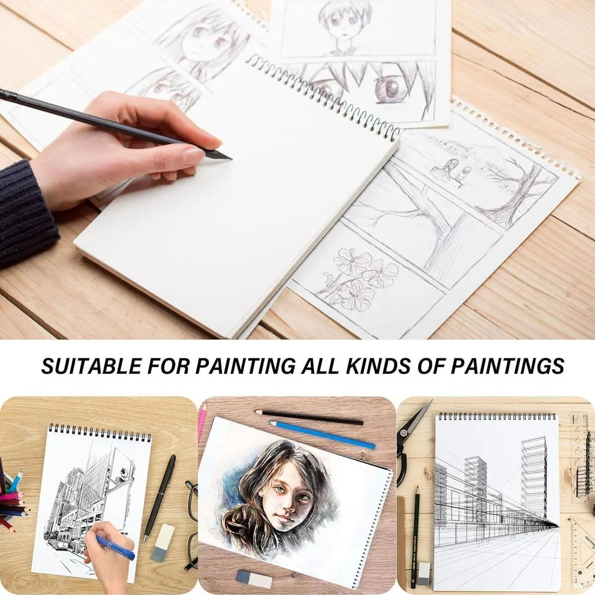 【Convenient Size】A4 (9"x 12") Sketch Book includes 50 sheets(100pages) 100gsm milky paper.Top spiral make our sketchpad friendly for both left handed and right handed, paper inside the sketch book is very beautiful & smooth while drawing.