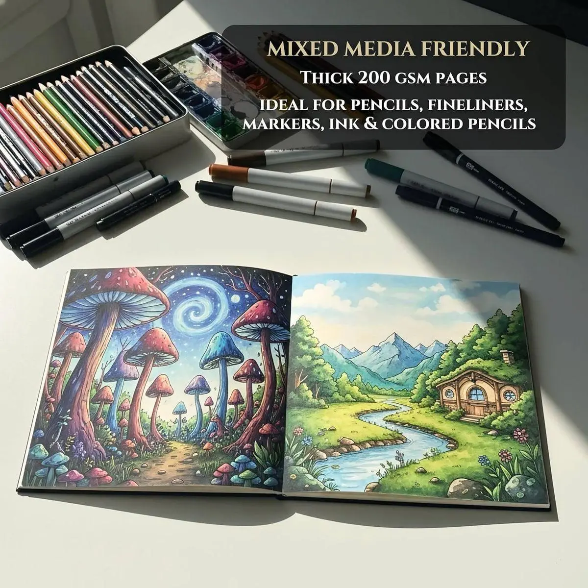 THICK 200 GSM MIXED MEDIA ART PAPER: Heavy, acid-free 200 gsm pages designed for mixed media. With pencils, fineliners and most pens you can comfortably use both sides of each sheet. Heavy applications of very wet media or alcohol-based markers can show through – just like in any sketchbook – so you can choose to work one-sided when needed.