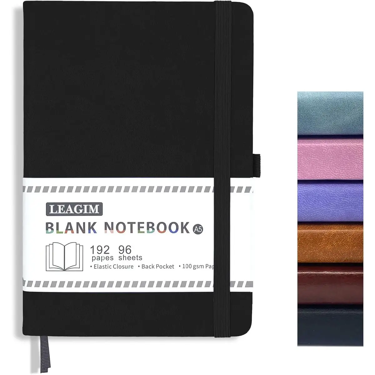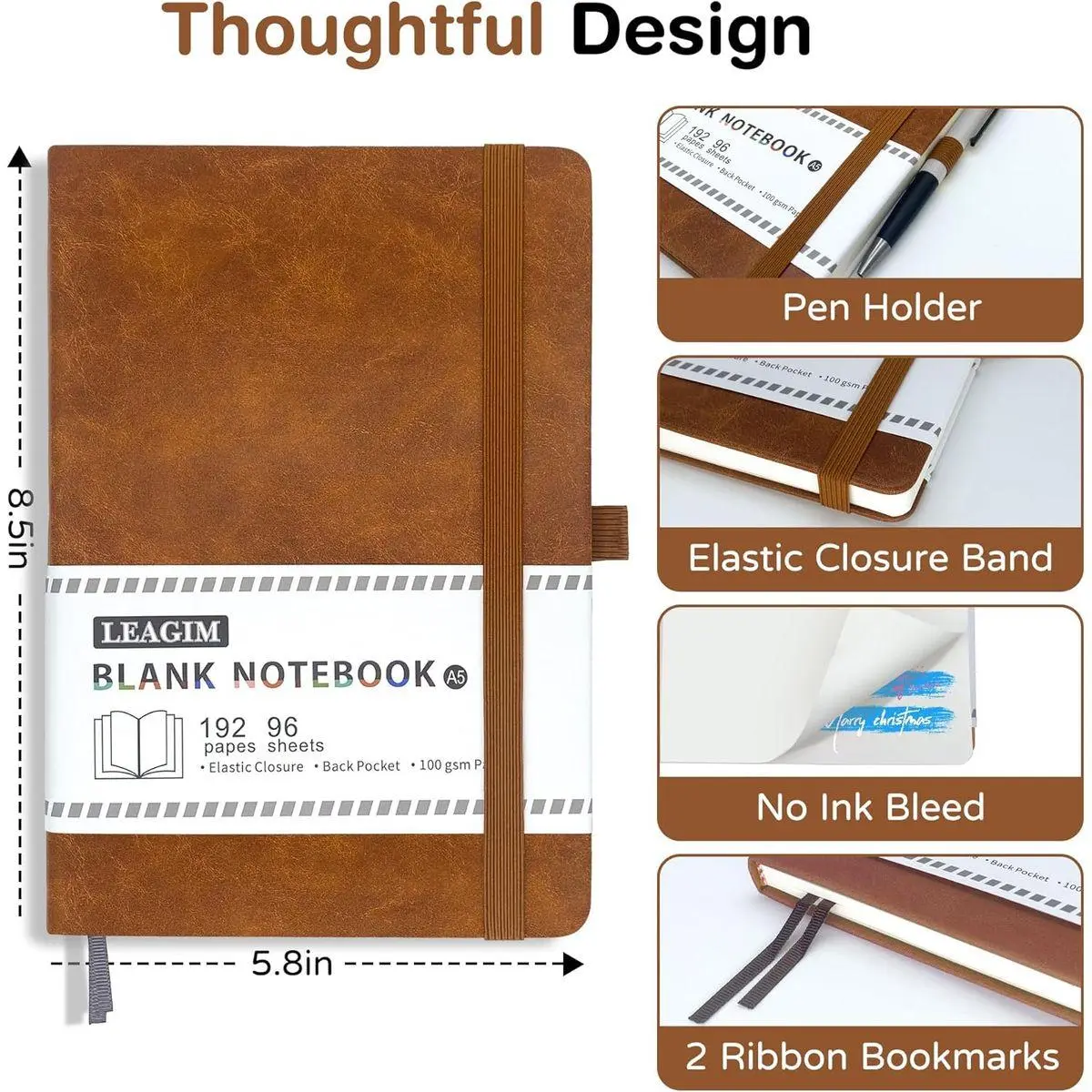 📔BLANK JOURNAL NOTEBOOK: This 5.8 * 8.5 inches A5 blank journal notebook made of waterproof hardcover leather cover, 96 sheets/192 pages, unlined notebook for all your drawing, writing, sketching, note-taking, traveling, etc.