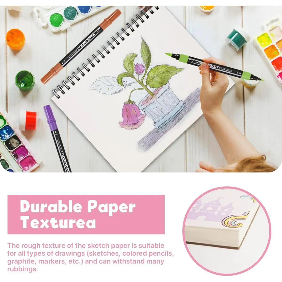 DURABLE HIGH QUALITY PAPER: Paper is extremely tough and durable,So it can withstand multiple paintings without deformation or penetration.80 sheets each pad of (100gsm/68lb) fine textured bright paper; providing better drawing & writing experience.--Ideal for all dry media including pencil, pen, pastels, charcoal, sketching sticks,gel pen and so on. NOT applicable to markers