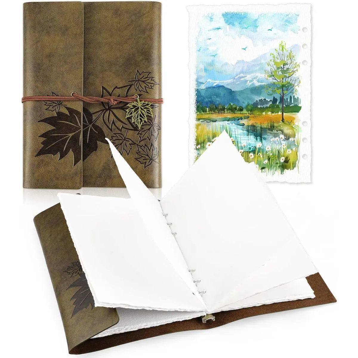 【What You Will Receive】You'll receive a 6.3x9 inch watercolor book with a vintage brown leather cover, including 24 sheets of 5.5x8.1inch deckled edge watercolor paper, an ideal watercolor journal for daily creative needs