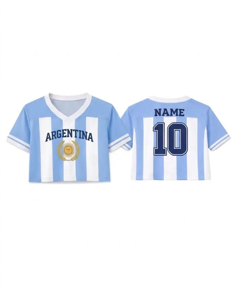 This short sleeve crop top is perfect for women who love athletic fashion. It combines sporty vibes with streetwear style, making it ideal for football enthusiasts. The jersey features a cropped design, adding a trendy touch to your wardrobe. Ideal for casual outings or sports events, it keeps you looking chic and comfortable.