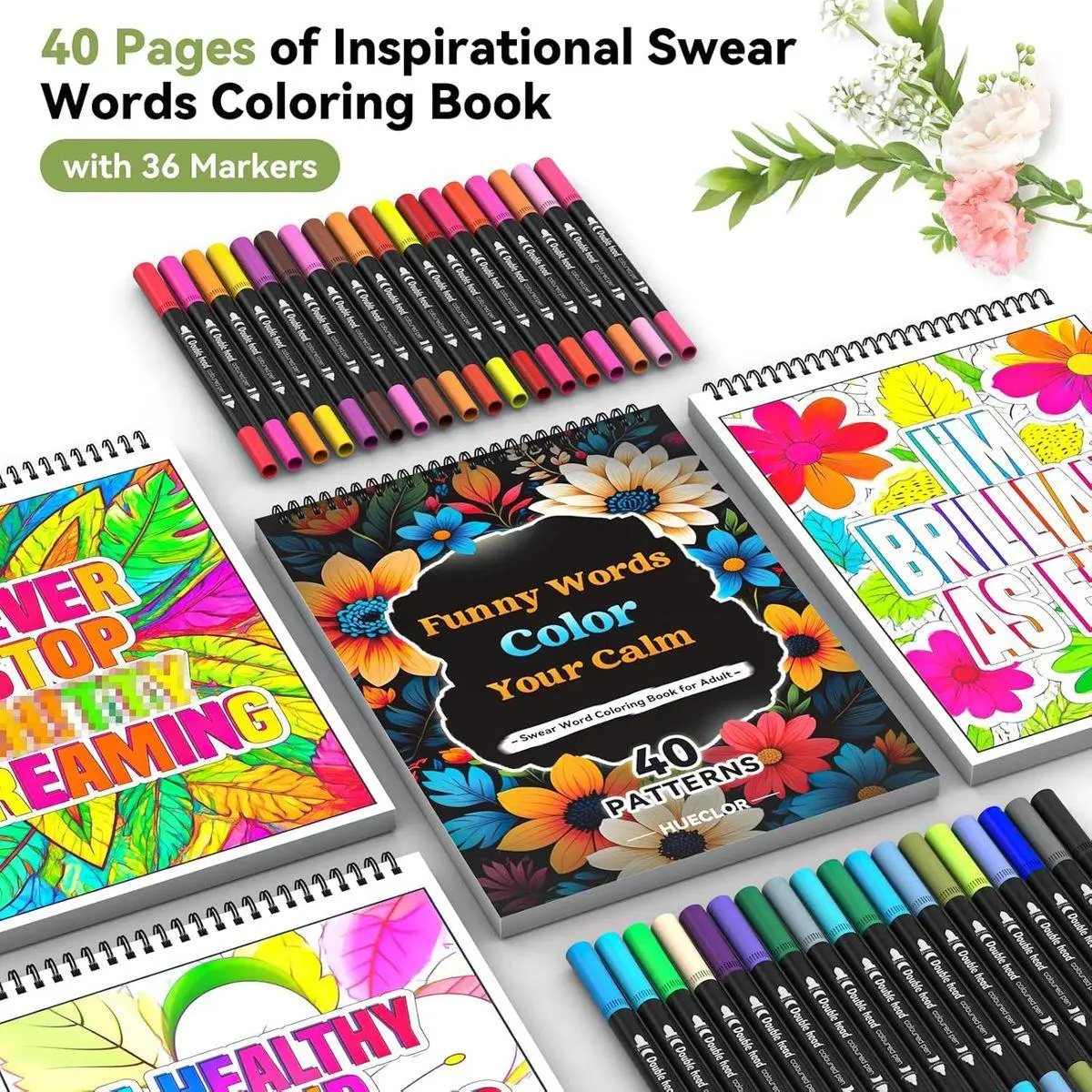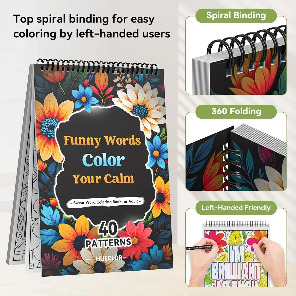 Motivational Swear Word Color Book: Therapeutic Coloring Fun! Unlock the therapeutic power of art with this A4-sized swear word coloring book, where vibrant floral designs meet empowering, cheeky phrases. Each of the 40 single-sided pages is printed on 300GSM ultra-thick paper—no bleed-through, just pure creative escape. Top spiral binding makes it easy to flip and lay flat, perfect for both left- and right-handed colorists!