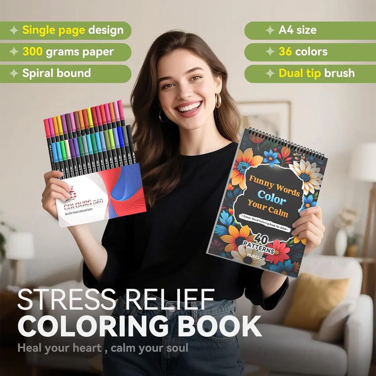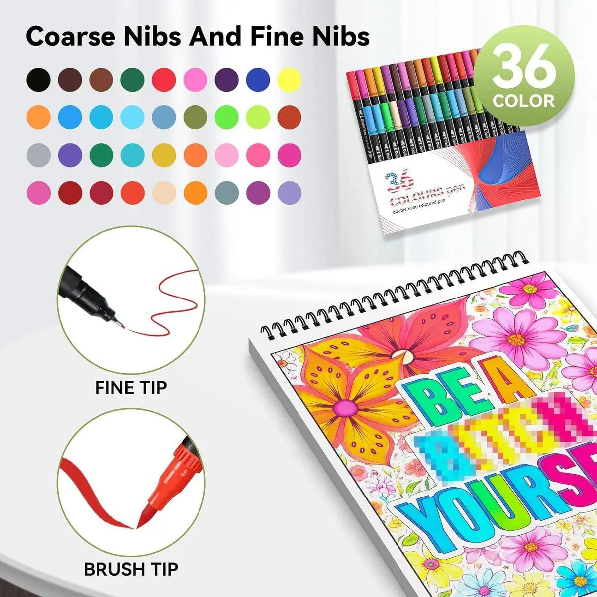 Adult Coloring Book Set with Markers: Start Coloring Instantly! Jump right into therapeutic creativity with 36 premium markers (1-2mm broad + 0.4mm fine tips). Smooth, bleed-free, and designed for stress-relieving flow—no setup, just instant color therapy!
