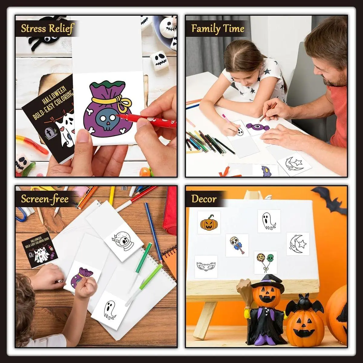 Bold Coloring Books Pocket-Sized: Each Halloween mini coloring book measures just 3 x 3 inches. Our Halloween pocket size coloring book is easy to carry—just throw the Halloween coloring book in your bag, backpack,or even a large pocket for coloring fun anytime.Suitable for left or right hand, and designed to be easy to open and close, making it perfect for both and adults on the go