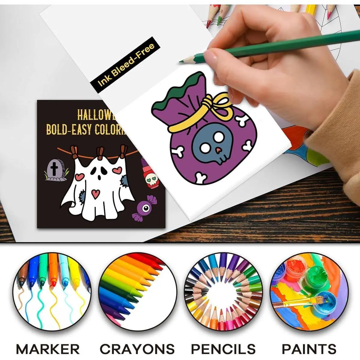 Safety Materials: The Halloween theme mini coloring books are solid enough to color on without ripping or tearing. These Halloween coloring books are made of sufficiently thick paper, making them great for coloring with crayons, pastels,colored pencils,or pens. The durable paper ensures a smooth coloring experience while preventing bleed-through, suitable for all coloring tools