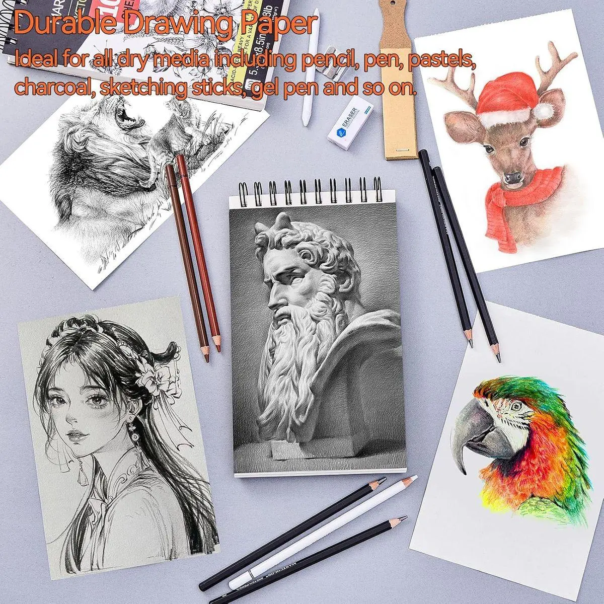 High-Quality Sketching Book Pad - This sketching book paper is acid-free and PH neutral with standard-weight 68 lb/100gsm, It prevents bleeding, smudging and feathering for clean artwork. Keep your artwork looking great for years to come!