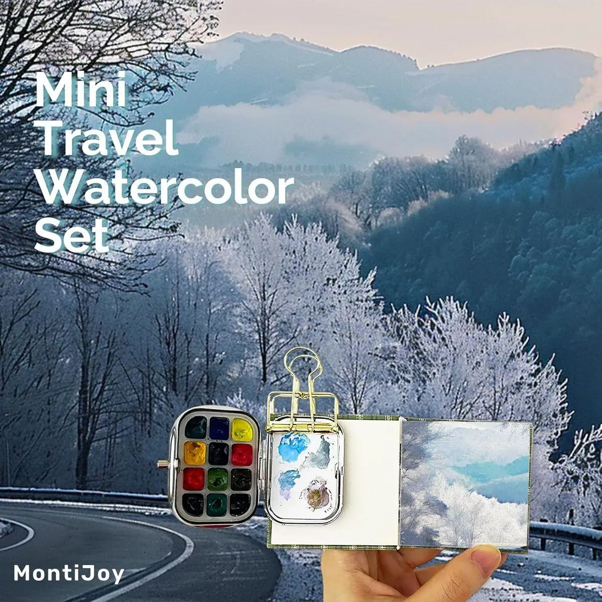 🌟 Ultra-Portable Design: The MontiJoy Mini Travel Watercolor Set features an adorably tiny 12-slot watercolor palette (2.17x1.57x0.67in) and a petite watercolor book (6x6 cm, 140lb, 300GSM), perfect for capturing moments on the go.