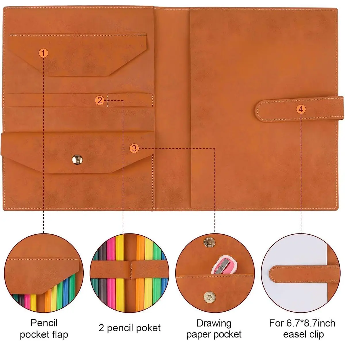 【Best Desgin】The drawing book is designed with pocket on the inside, which can hold art accessories such as sketchbook, pencils, pens, erasers, sharpeners, etc.This sketchbook is the perfect gift for artists who love taking both their art and inspiration wherever they go.The all-weather cover not only looks great but also protects your art from the elements. The leather will develop a unique patina and age beautifully as time goes by.