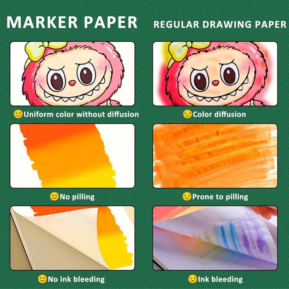 Feature: Our marker paper features a 3-layer coating to instantly lock in pigment. The acid-free, prevents warping and yellowing, preserving your vibrant art with sharp lines and gradient effects