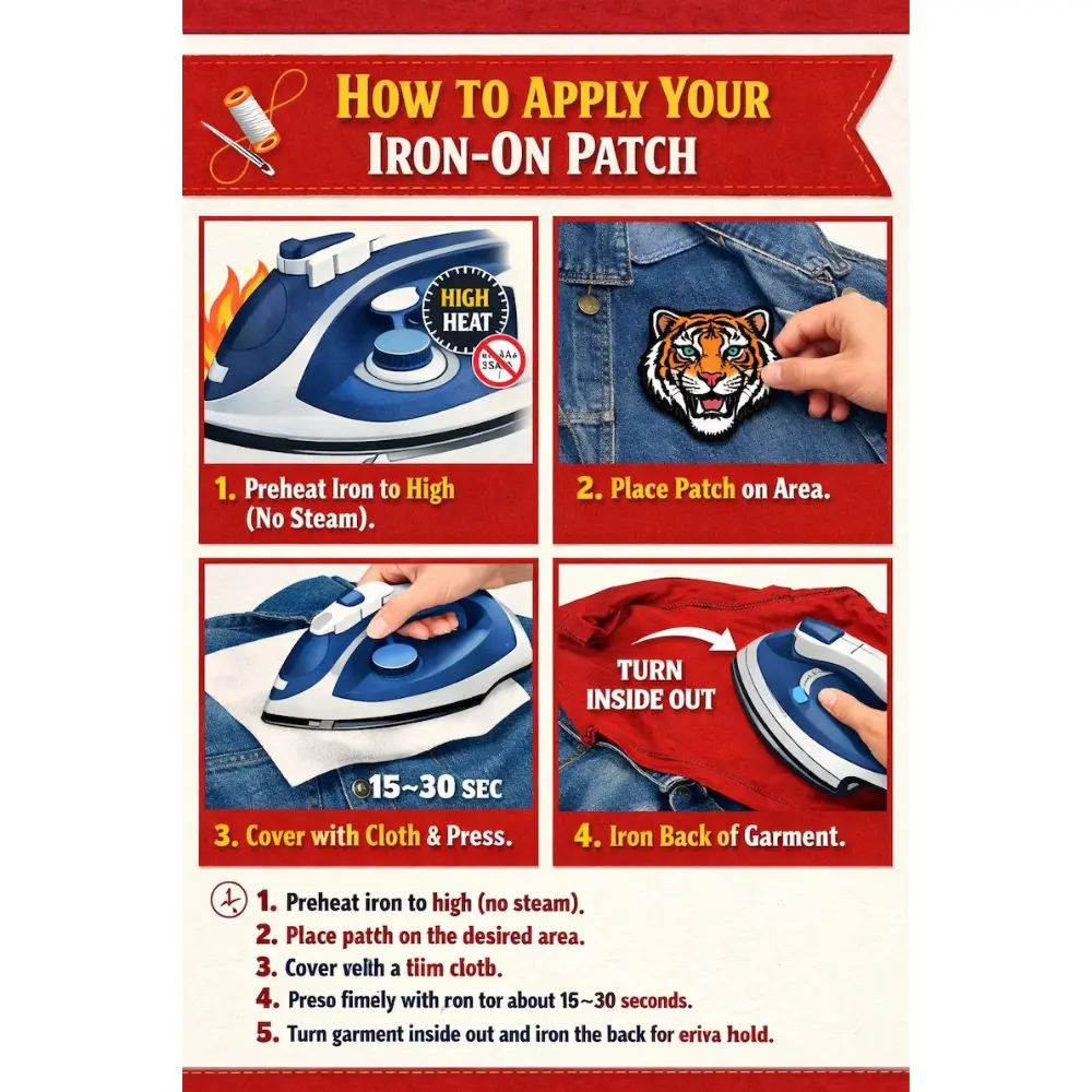 ·Place a thin piece of cotton fabric over the patch to protect the embroidery from direct heat.
