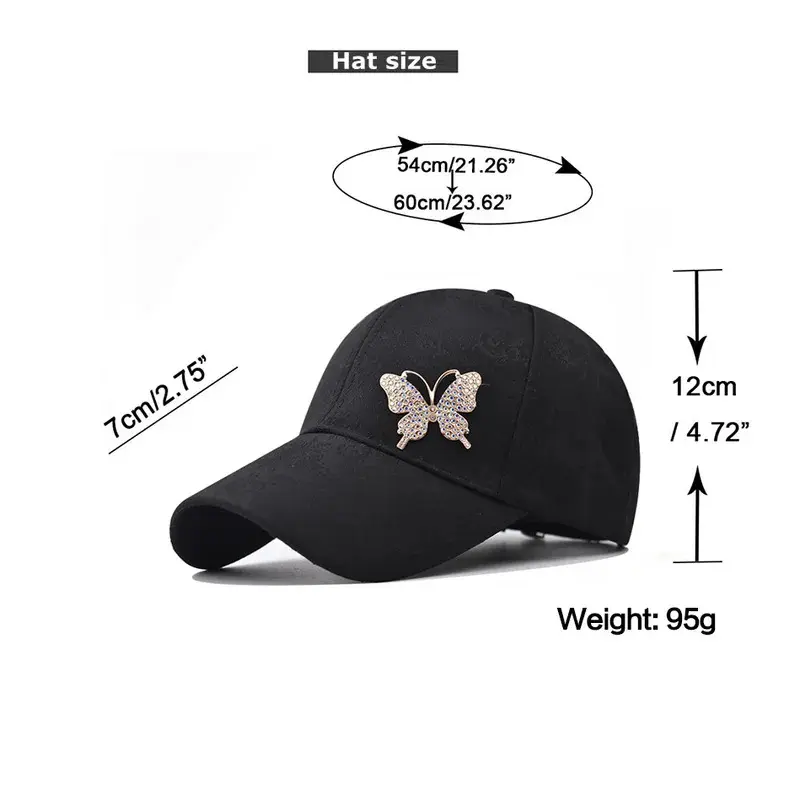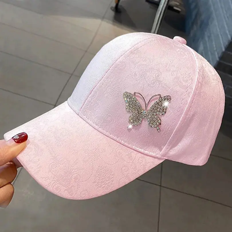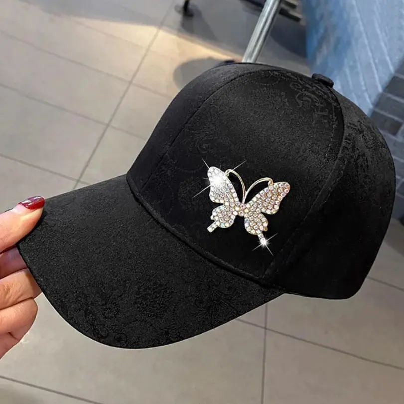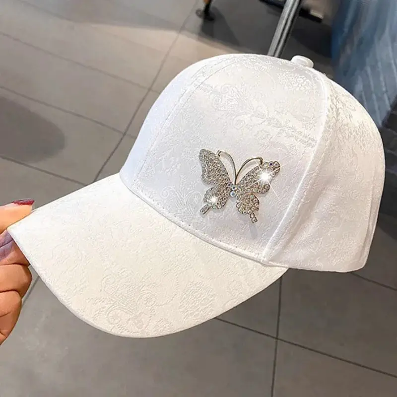 Rhinestone Butterfly Baseball Cap Women's Spring Summer Versatile Sunshade Hat Lace Pattern Baseball Cap