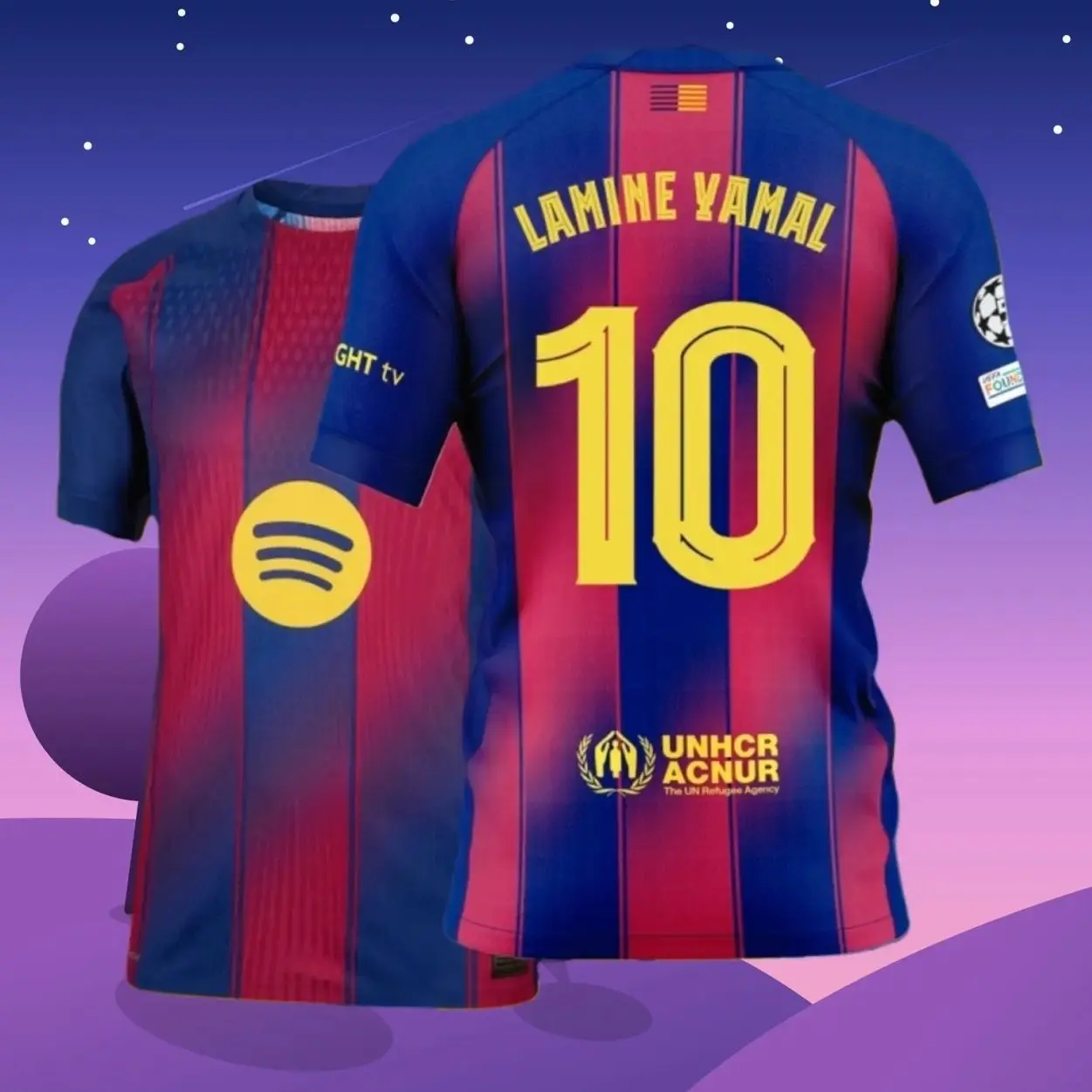 25 26 Home Red And Blue 10# Lamine Yamal Short Sleeve Soccer Jersey Fans Version 2