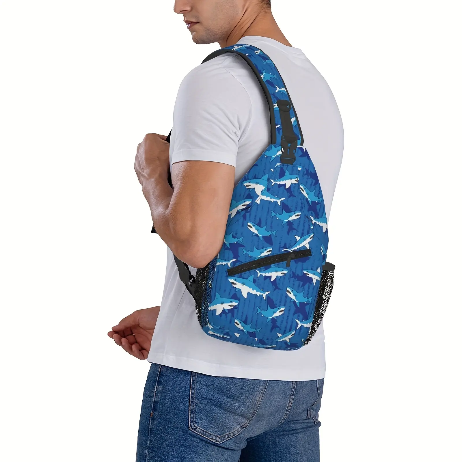 Crossbody Chest Hiking Cartoon Style Shark Pattern Shoulder Folding Large Capacity Fashion Durable Can Be Used For Shopping, Work, Leisure Travel Beach Fishing Travel Accessories Must Have For School Back Christmas Gifts bag backpack