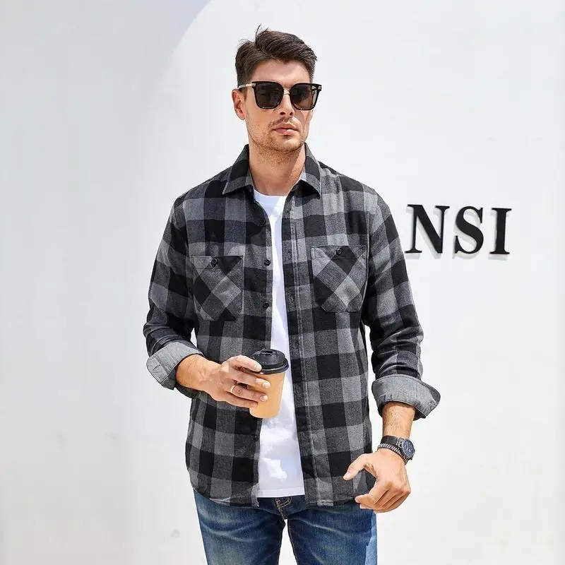 Flannel Shirt for Men Button Down Regular Fit Mens Flannel Shirt Long Sleeve Casual Plaid Flannel Shirt