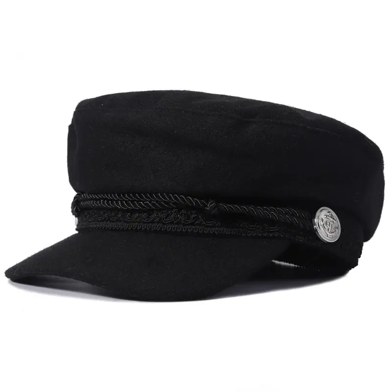 Fashion Women Men Spring Autumn Sailor Black Ladies Beret Top Captain Cap Travel Octagonal Hat