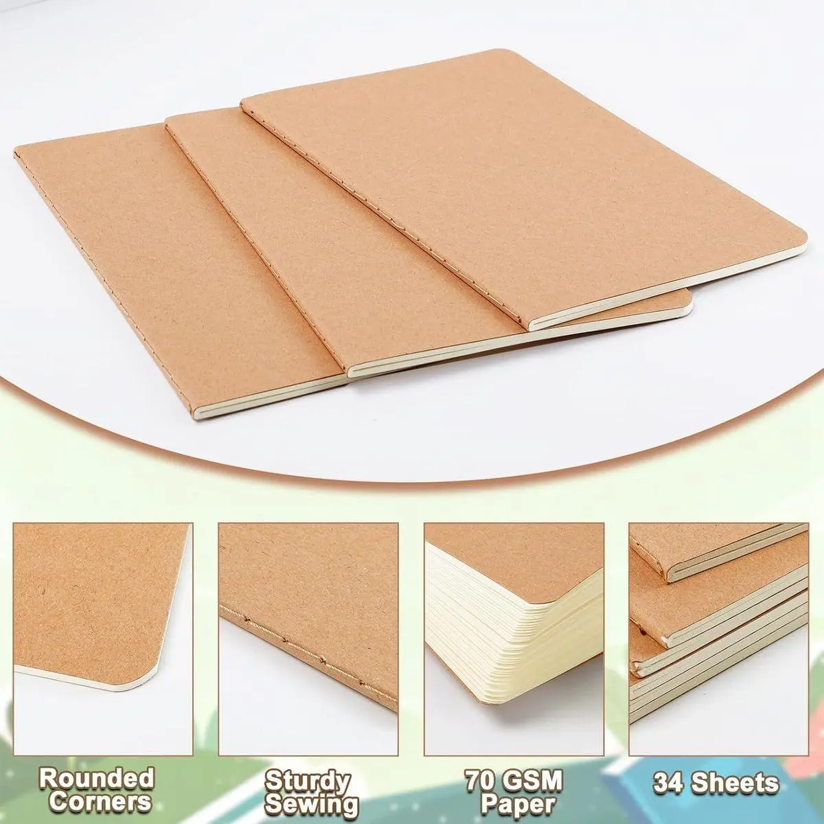 Package Includes: You will receive 15pcs kraft paper blank notebooks, each containing 34 sheets (68 pages) of high-quality writing paper. This notebooks bulk set is ideal for notes, sketches, and travel, providing plenty for daily use or sharing with friends.
