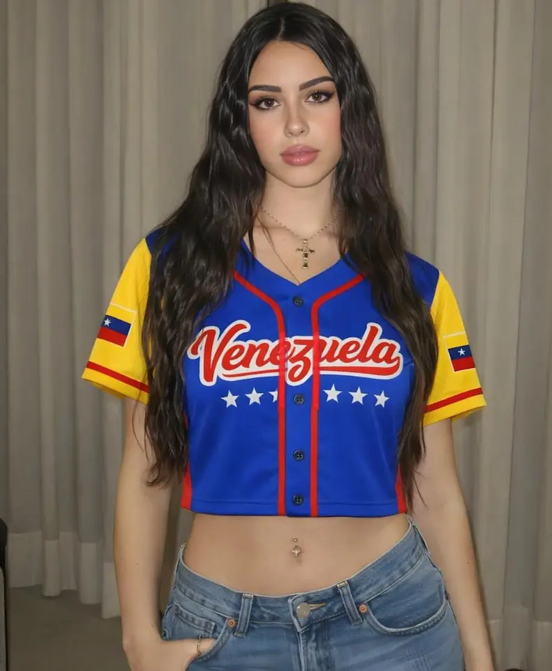 Show your Venezuela pride with this stylish Venezuela Crop Top Baseball Jersey. Designed with a modern cropped fit and sporty baseball style, it's perfect for game days, concerts, or everyday wear. A great Venezuela baseball gift for fans who love bold style and cultural pride