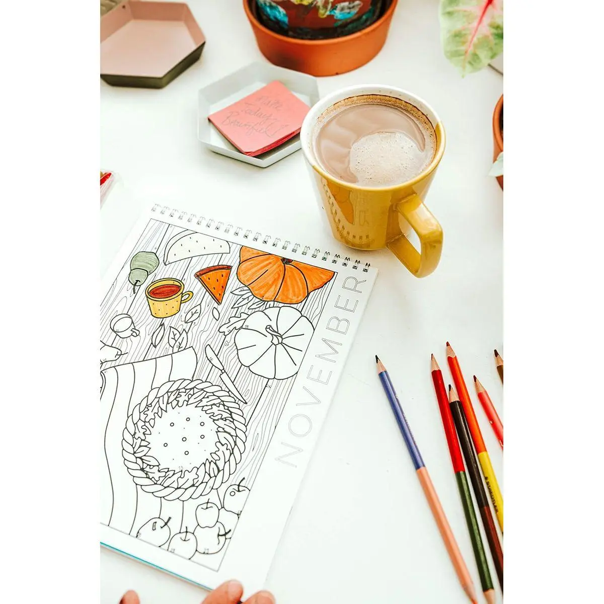 THE PERFECT SELFCARE CALMING COLORING BOOK that lets you stop, breathe & bring beauty into your life. Our year-free color book WON’T EXPIRE on you, so you can color it in 2021 or 2025. No pressure. JUST UNWIND & RELAX while being mindful of each day WITH OUR GORGEOUS, FUN ILLUSTRATIONS – and at the end of every month, you’ll have a completed work of art.