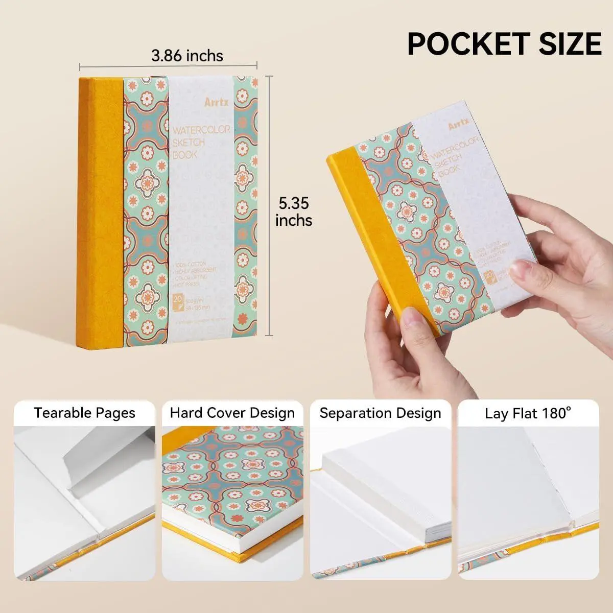 Elegant Design: The arrtx watercolor sketch book boasts a beautifully patterned cover, adding a touch of elegance to your art supplies. The sturdy binding ensures that your artwork is well-protected, while the eye-catching design makes it a stylish addition to your collection.