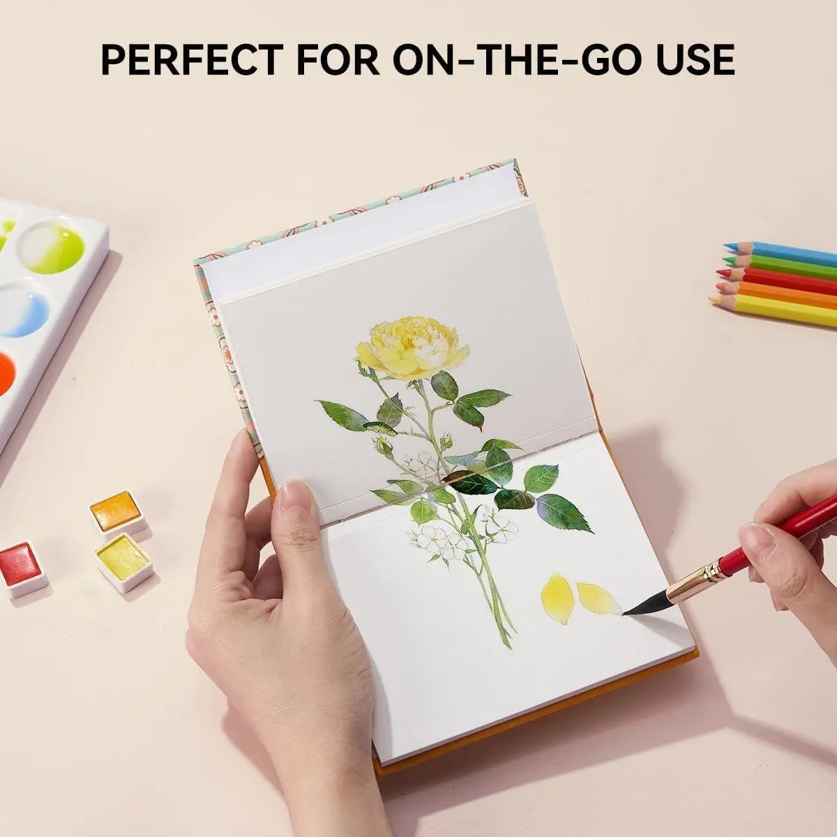 Compact and Portable: With a convenient size of 5.35 x 3.86 inches, this sketch book is perfect for artists on the go. Its compact design allows you to carry it anywhere, making it an excellent choice for travel sketching and outdoor painting. This watercolor sketch book features an exposed fabric spine binding with small perforations for easy tearing.