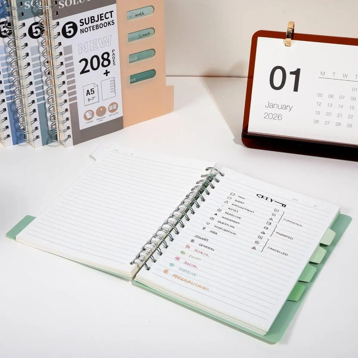 5-Subject Organization System: This 5 subject notebook features 5 colorful dividers and hollow writable cover tabs, perfect for categorizing school subjects, work projects, or personal notes with ease. Manage various classes/projects in one lightweight notebook, cutting clutter and increasing efficiency