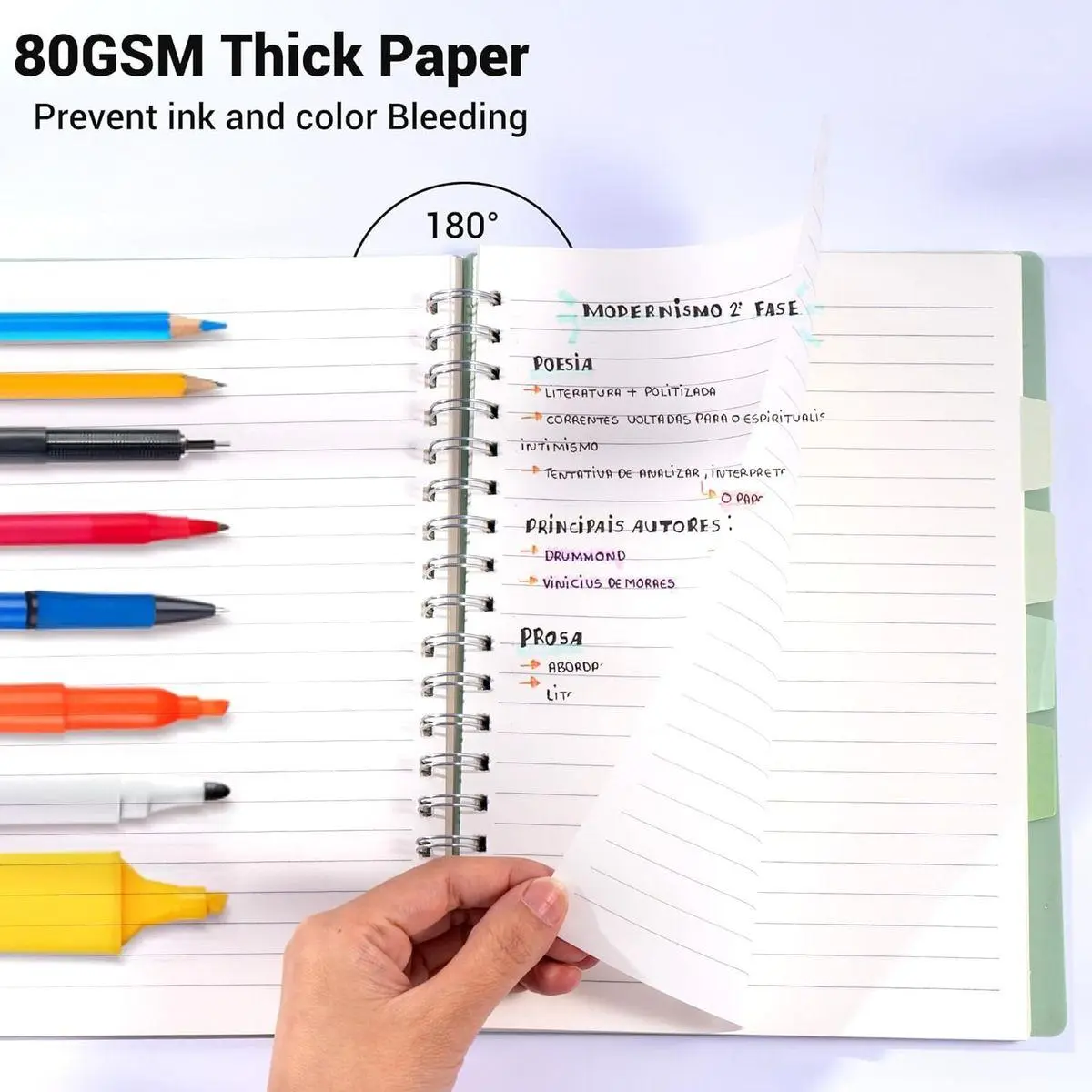 Durable Double-Wire Spiral Binding: Built with strong double-wire spiral binding, this notebook lays completely 180° flat for comfortable writing. The sturdy coil prevents pages from tearing or falling out, while allowing 360° flipping for easy note-taking on the go. No more struggling with flimsy bindings