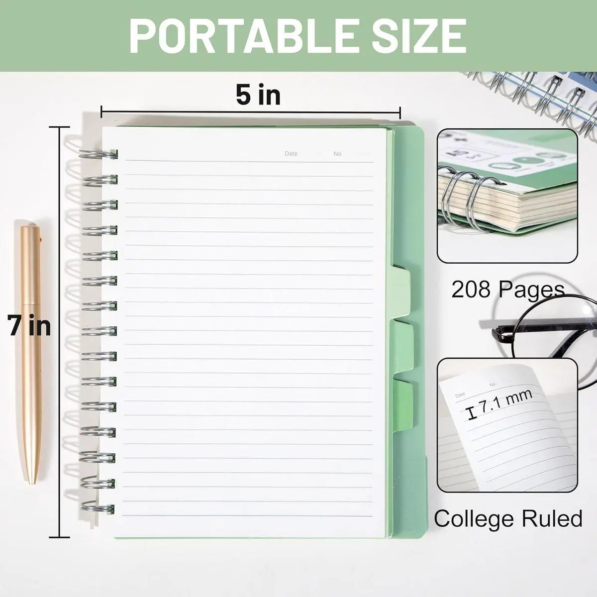 208 College-Ruled High-quality Pages: Premium 80GSM paper resists ink and color bleeding and feathering, suitable for most types of pens. The college ruled (7.1mm) format offers structured writing space, while the light-colored paper reduces eye strain