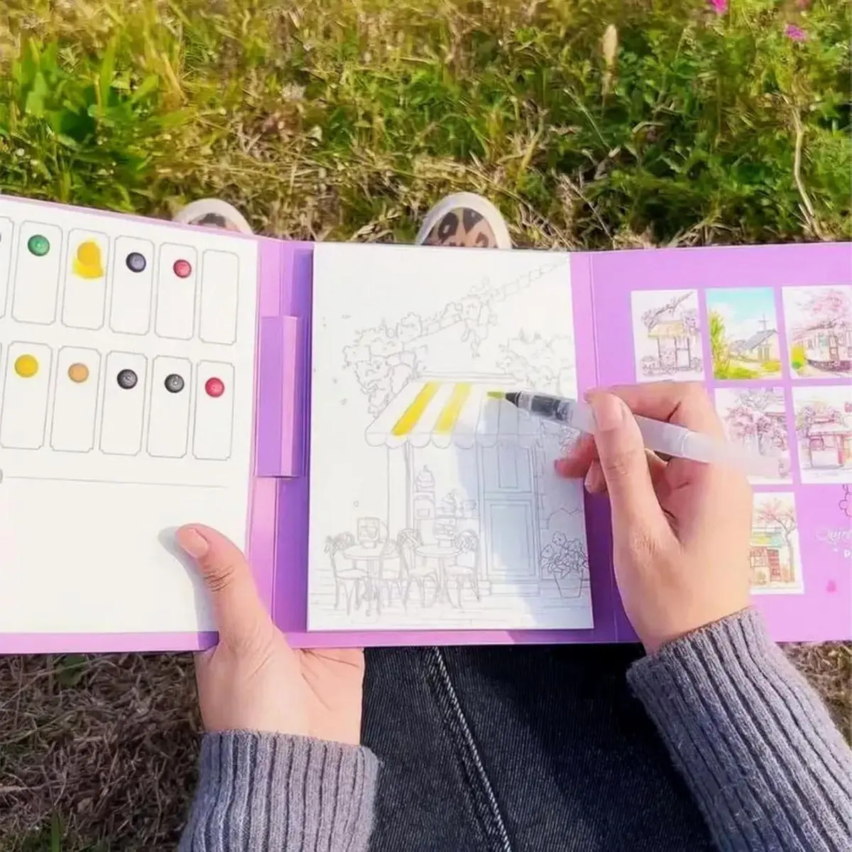 【Embedded Paint Design】 Each page features its own integrated palette—simply wet the brush and start painting. Eliminates separate pans and spills