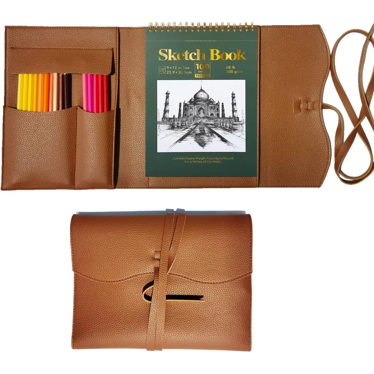 Leather Sketchbook Cover : The leather sketchbook holder is made of high-quality PU Leather, which is lightweight, beautiful, and functional, plenty storage holds a variety of art supplies, tools, and sketchbooks for everything you need for an afternoon sketching. The artist sketch pad cover holder is easy to carry. The sketchbook is not included.