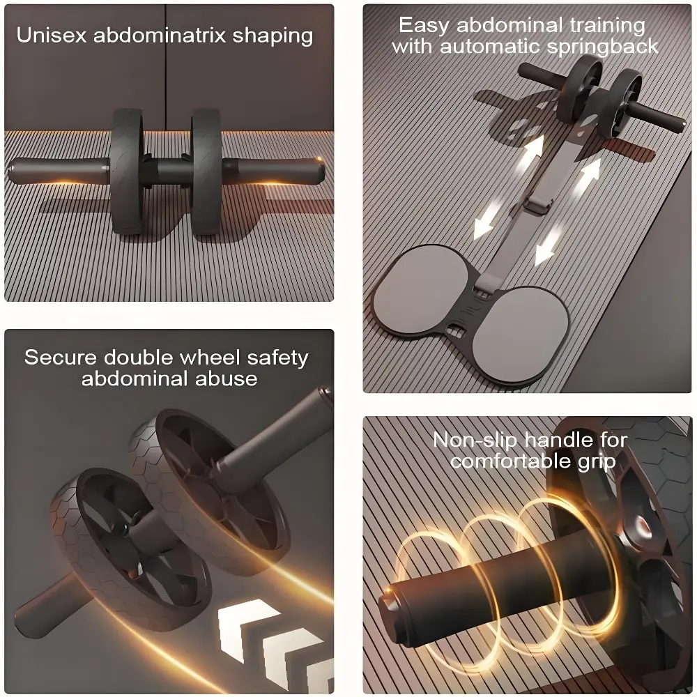 Automatic rebound ab roller with adjustable resistance, heavy-duty 330lb load-bearing. Non-slip surface and thick EVA knee pad protect joints. With unisex exercise guide for home ab training, compact portable for full core workout.