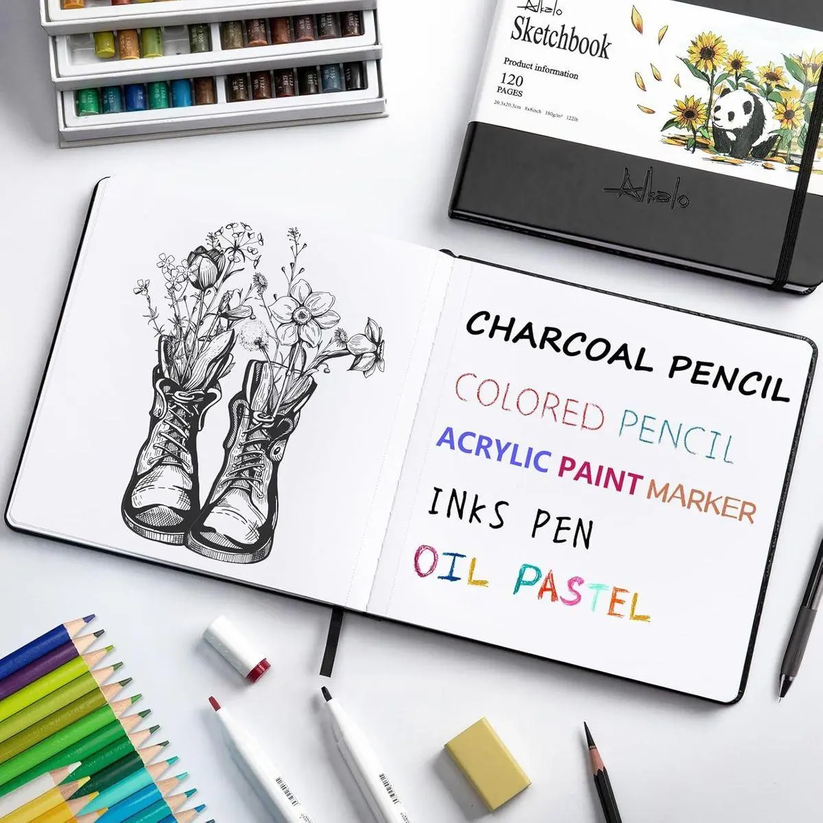 【THICK PREMIUM PAPERS】Our sketchbook employs acid-free paper to protect your sketch work from color fading, 122LB/180GSM Thick Paper enough to avoid bleeding and ghosting. Suitable for Charcoal Pencils, ink pens, Colored Pencils, acrylic paint markers, and oil pastels.