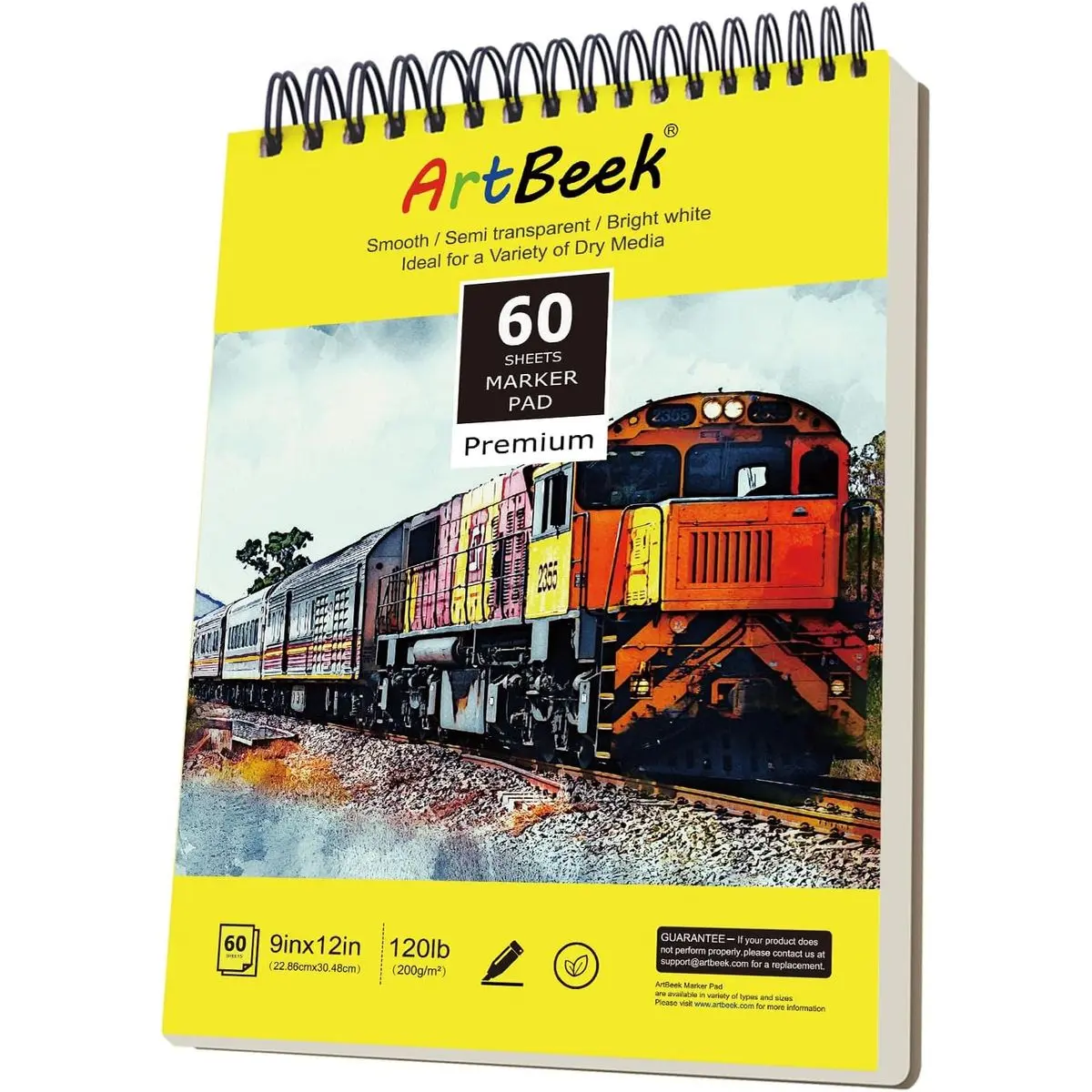 【9" × 12" PORTABLE DRAWING PADS】ArtBeek Art Marker Pads Size: 9 x 12 inch drawing pages. Nature White, Smooth Coated marker paper.Both beginners and seasoned art pros will relish in the freedom granted by this plus sized paper! You can use it for drawing, sketching, coloring, lettering and dry mixed media. The paper will quickly absorb moisture to maximize the mixing capacity and not bleeding.