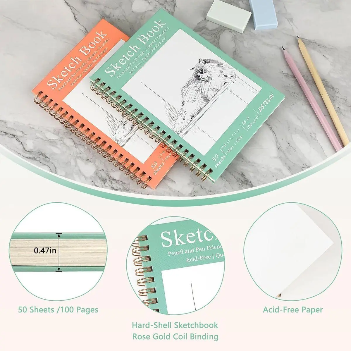 2-Pack Bundle for Backup: Get two sketchbooks in one pack—one pink and one green. They’re small (7.5×5.1 inches), so you can take them anywhere, like art class or on a nature trip.