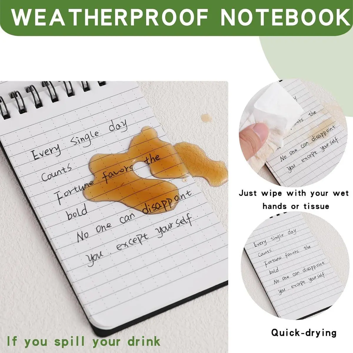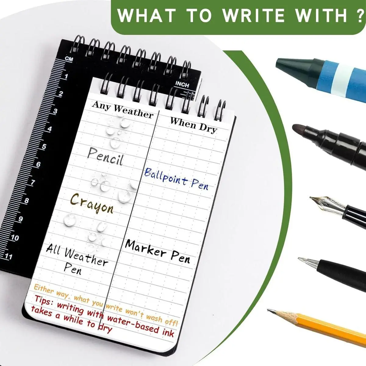 Weatherproof Notebook: What to Write with? Adopting a waterproof PVC cover and waterproof paper. On rainy days, use a pencil or an all-weather pen, and your notes will stay intact. When the paper is dry, ballpoint pens and permanent markers work well