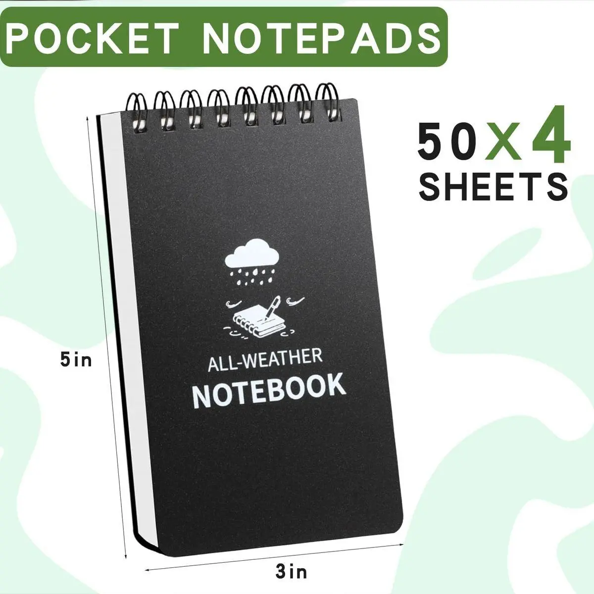 Waterproof Notebook: 4 Pack waterproof notepad, 100 pages / 50 sheets per waterproof notepad to meet your needs. Our all-weather notebook can withstand water, mud, and even won’t turn to mush easily