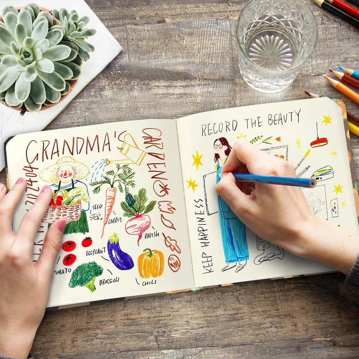 LAY-FLAT 180° DESIGN- This hardcover sketchbook is designed to lay flat, making it easy for you to write and draw efficiently. Its firm thread-bound construction ensures that pages won't peel away from the cover.