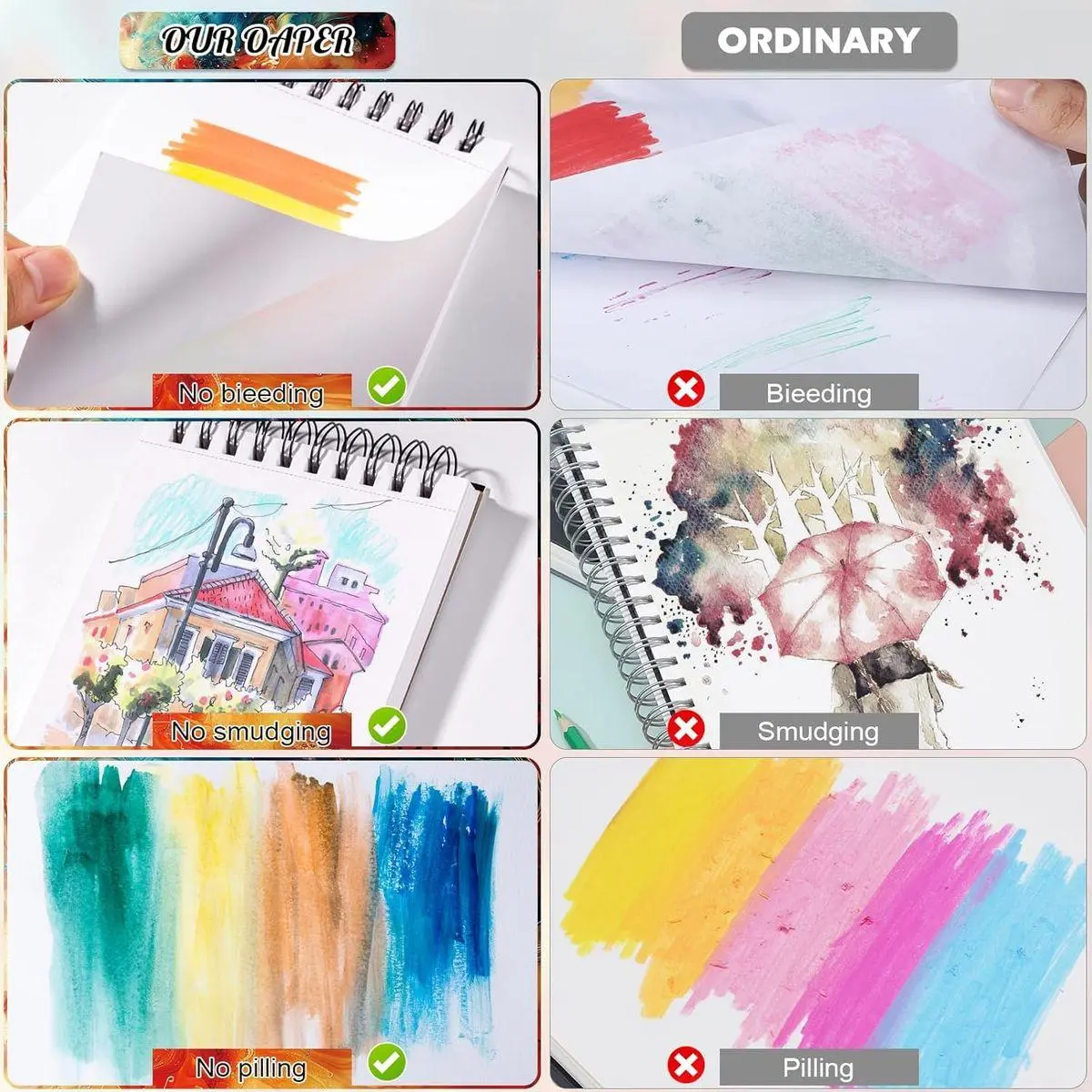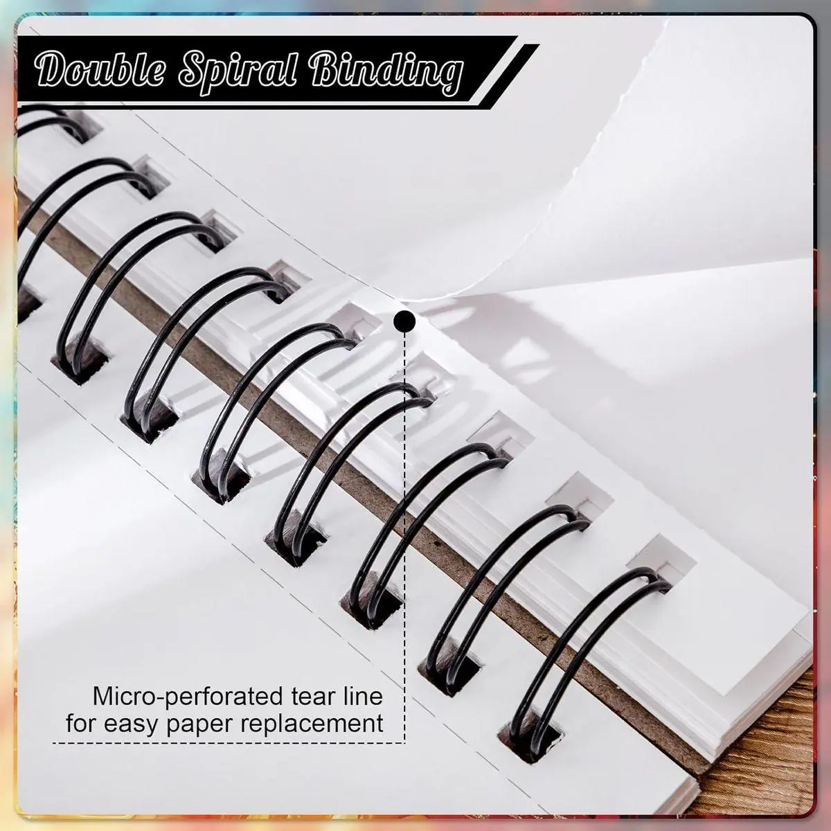 【Tearable Spiral Design】The top spiral marker sketchbook can be used flat at 180°. Micro-perforated tear lines allow for clean tearing of pages - no scissors required. Durable binding stands up to travel, perfect for park sketching or studio work