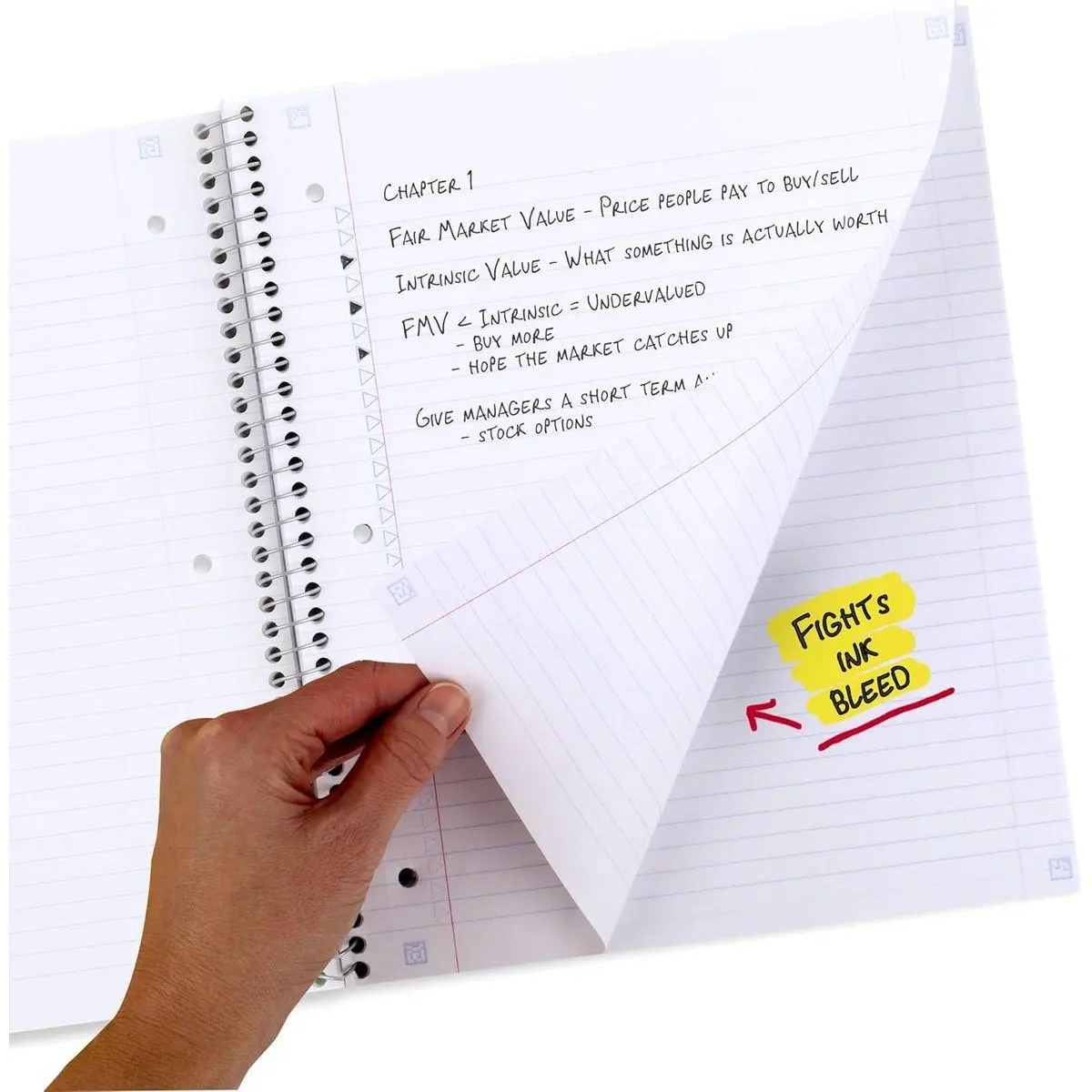 1 subject notebook has 80 double-sided, college ruled sheets that fight ink bleed and are perforated for easy tear out. Sheets measure 8-1/2" x 11" when torn out.