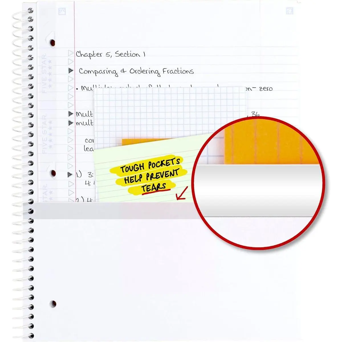 Tough pockets help prevent tears and hold 8-1/2" x 11" loose sheets. Durable, plastic front cover is water-resistant to help protect your notes and our Spiral Lock wire helps prevent snags on clothes and backpacks.