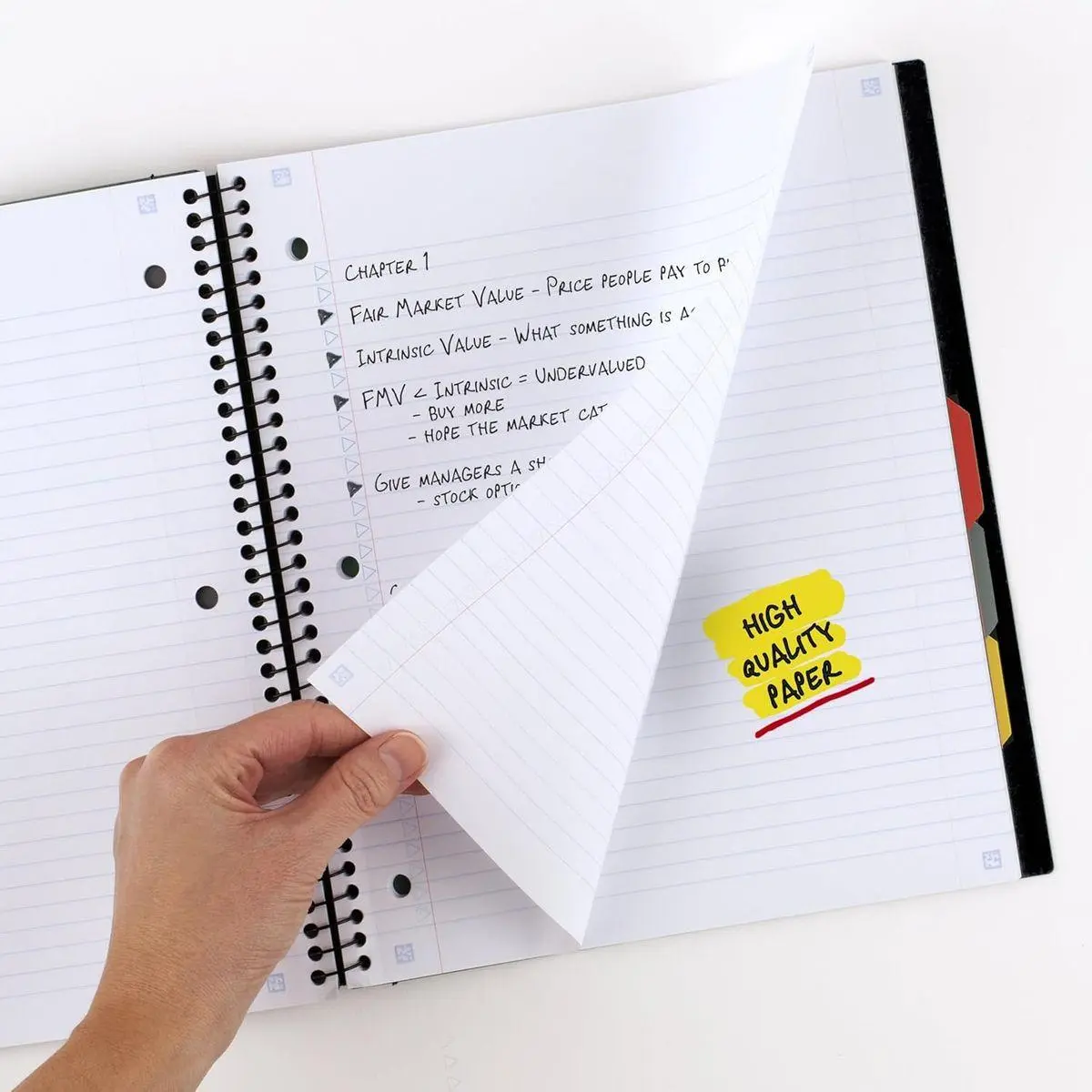 This 5 subject notebook has 200 double-sided, college ruled sheets of high-quality paper that are perforated for easy tear out. Sheets measure 8-1/2" x 11" when torn out.