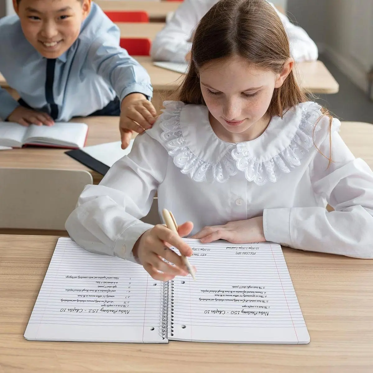 COLLEGE RULED: Each 8" x 10-1/2" notebook features 70 double-sided sheets with red margin lines and is 3-hole punched, allowing for easy transfer to your binder.