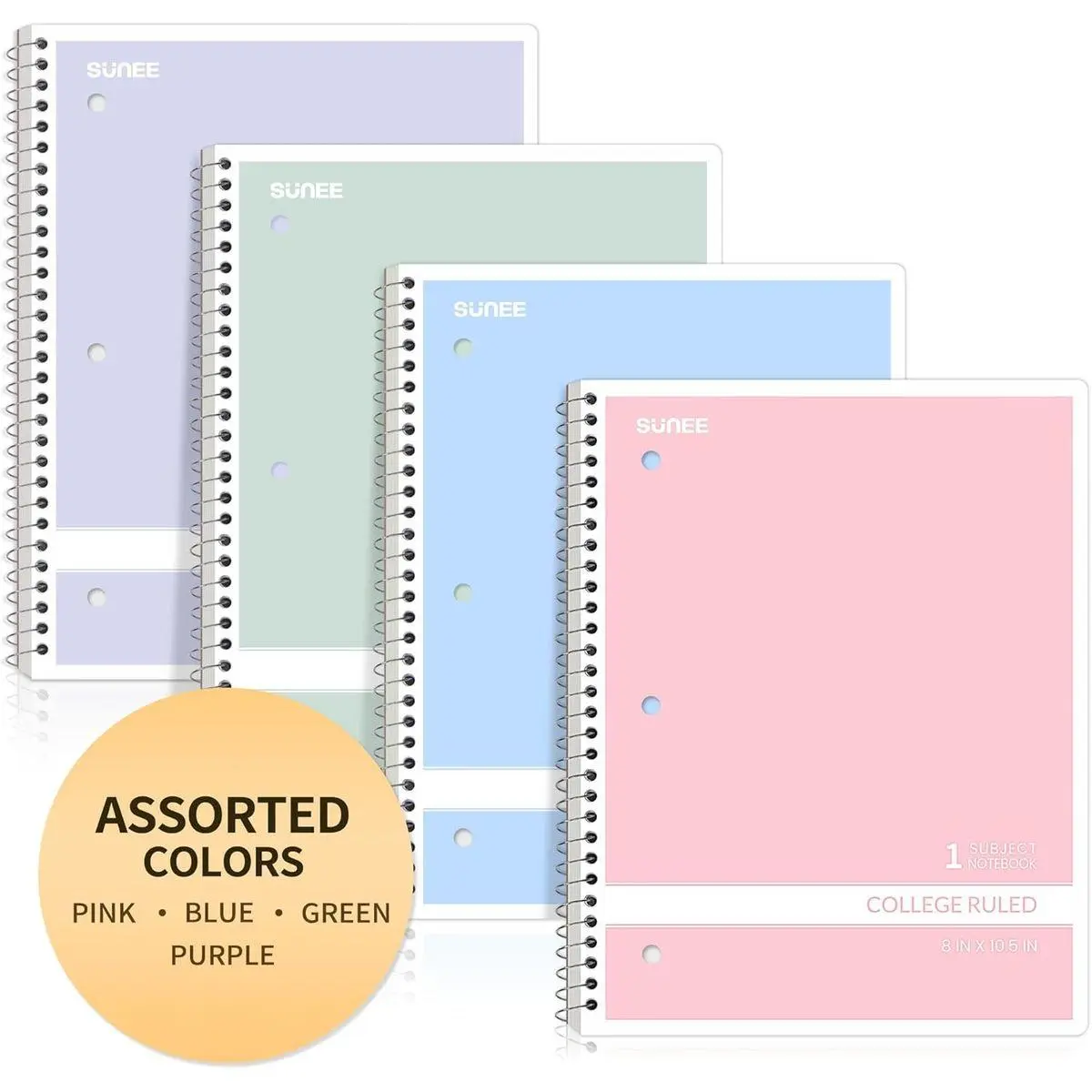 CUTE 4-PACK: Ideal for color-coding by subject or child, this 4-pack of 1 Subject Notebooks comes in soft pastel shades of Light Pink, Purple, Blue, and Green, with 70 college ruled pages per notebook.