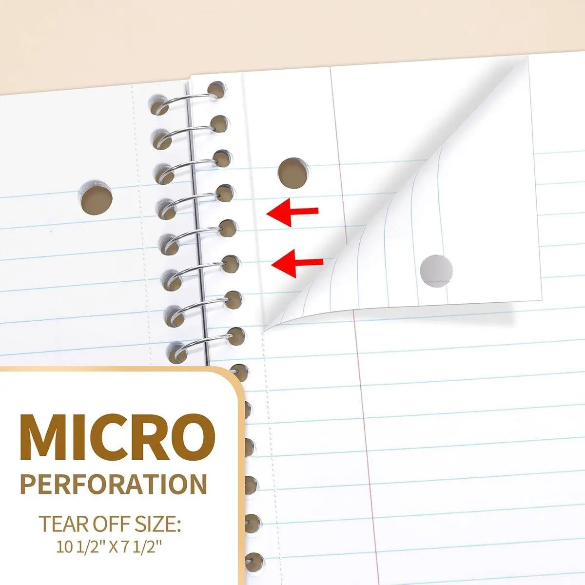 CLEAN TEAR-OUT: Micro-perforated pages ensure a neat tear-out, leaving you with 10 1/2" x 7 1/2" sheets. Accommodates double-sided writing and prevents ink bleed-through from your favorite gel pens.