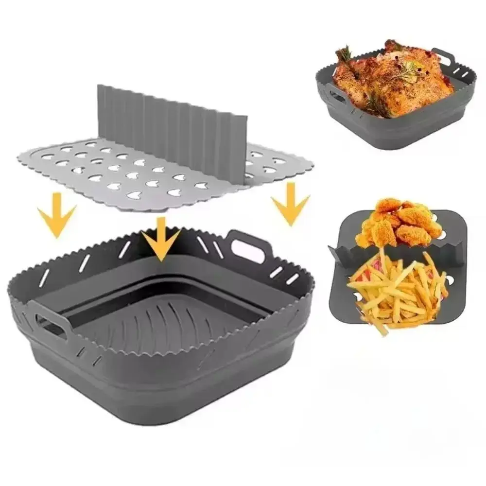 Square Air Fryer Silicone Liner, Non-Stick Food Grade High-Temperature Reusable Silicone Tray, Easy Clean Foldable, Silicone Baking Tray
