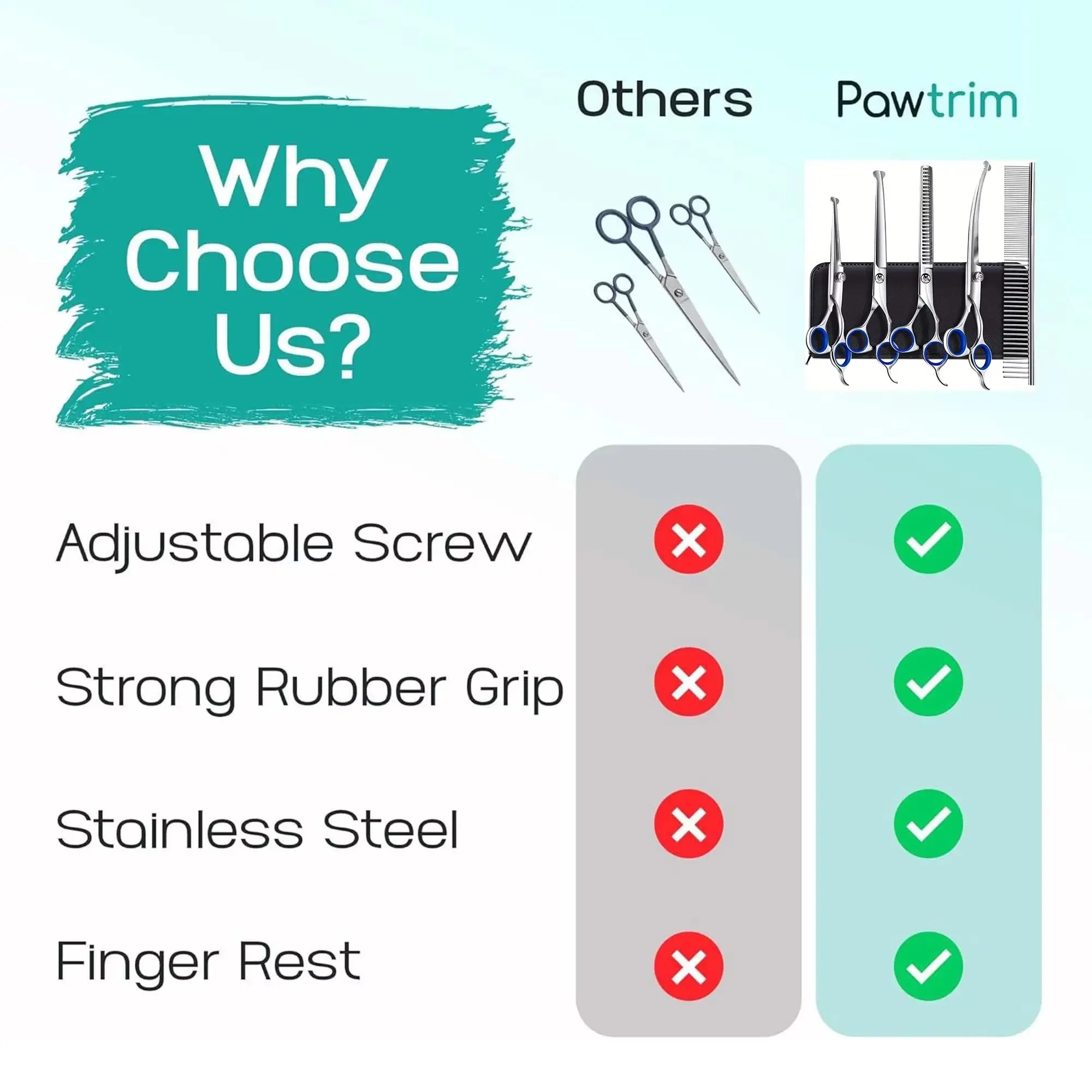 5 in 1 Professional Dogs Grooming Scissors Set Stainless Steel Dog and Cat Hair Thinning Shears with Safety Round Tip for Pet